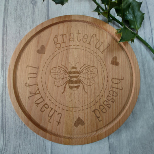 Beech Wood Chopping Board - Bee Thankful, Grateful, Blessed